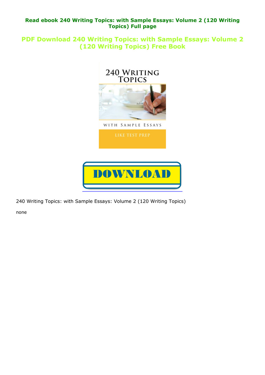 240 writing topics sample essays. 120 writing topics 120 model essays 120 essay outlines 1200 model sentences great for esl learners high school students test prep students college students this book is a sequel to 120 writing topics. 240 speaking topics and 240 writing topics cover the same topics. It outlines and breaks apart the different components of the essay and then teaches you how to write them using a variety of common topics. Download 210 writing topics.
